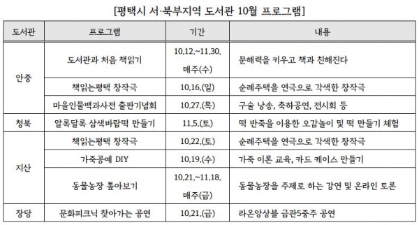 [충청뉴스큐] 평택시 서·북부지역 도서관은 10월을 맞이해 다양한 독서문화 프로그램을 준비했다.