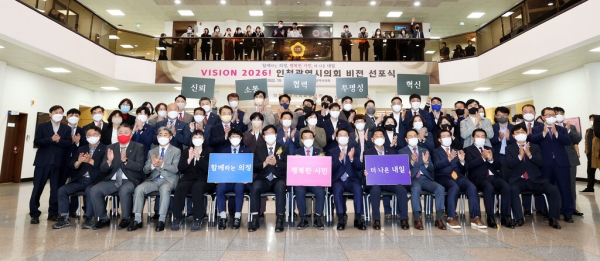 허식 의장은 “‘VISION 2026 인천광역시의회 비전’을 통해 향후 우수한 조직·인적·정보자산 확보로 시민 여러분들이 보다 행복하고 살기 좋은 인천을 만드는 데 최선을 다할 것”이라고 말했다.