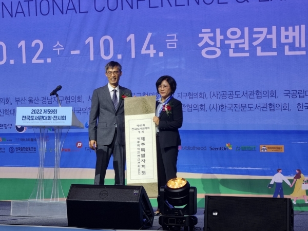 [충청뉴스큐] 10월 12일 창원컨벤션센터에서 열린 ‘제59회 전국도서관대회’에서 내년 제60회 전국도서관대회·전시회 개최지로 제주가 선정됐다.