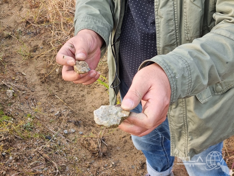 이날 역시 논바닥에서 상당량의 폐기물이 퍼올려졌다. 논바닥에서 순환골재가 쏟아져 나오자 '폐기물 무단 매립'을 감시하는 환경감시 전문가는 "논에서 나와서는 안 되는 것들이 나왔다"는 반응을 보였다.