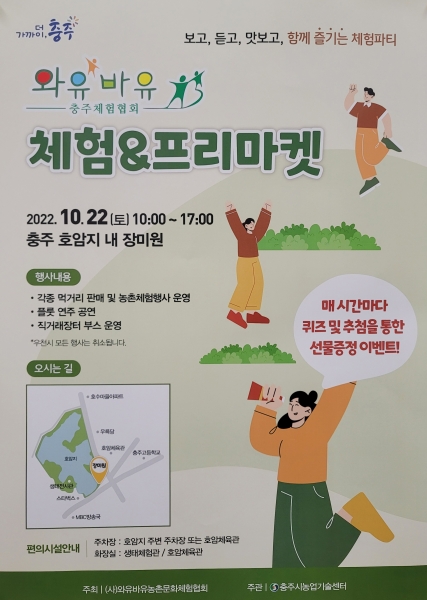 [충청뉴스큐] 충주시농업기술센터는 오는 22일 오전 10시부터 오후 5시까지 충주 호암지 내 장미원 일원에서 ‘와유바유 체험&프리마켓’ 행사를 개최한다고 밝혔다.