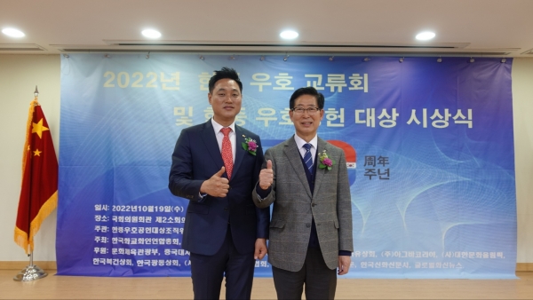 [충청뉴스큐] 경기도의회 건설교통위원회 오석규 도의원은 19일 국회의원회관에서 한·중 주요 내빈들이 참석한 가운데 양국의 미래 성장 발전을 도모하고 지속적인 공동발전을 위해 한·중우호공헌대상조직위원회 주관으로 개최된 ‘2022년 한·중 수교 30주년 기념 한중 우호 공헌 대상 시상식’에서 ‘문화’ 분야 대상을 수상하는 영예를 안았다.