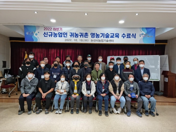 [충청뉴스큐] 논산시가 지난 19일 ‘2022년 하반기 신규농업인 귀농·귀촌 영농기술교육’마무리, 31명의 교육생에게 수료증을 안겨줬다.