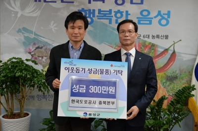 [충청뉴스큐] 12일 음성군 맹동면 충북혁신도시 소재 한국도로공사 충북본부에서 음성군 내 사회복지시설을 위해 사용해 달라며 성금 300만원을 전달했다.