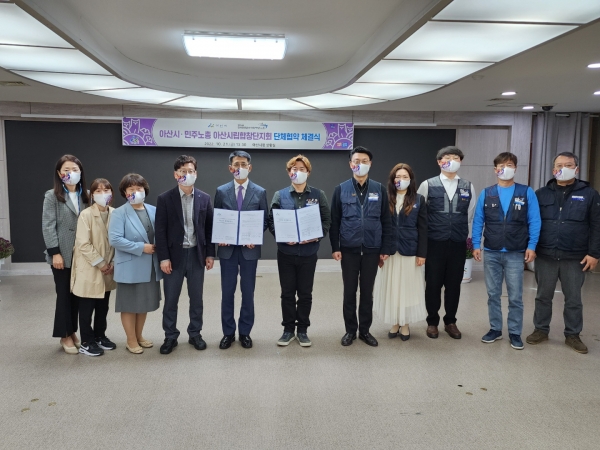 [충청뉴스큐] 아산시가 지난 21일 ‘전국공공운수사회서비스노동조합 충남문화예술지부 아산시립합창단지회’와 단체협약을 체결했다.