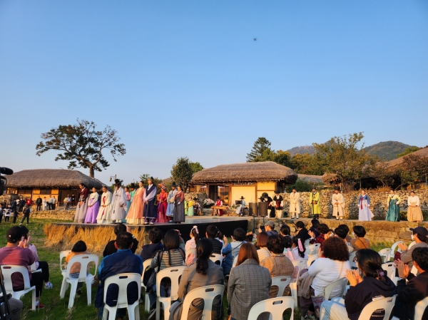 특히 외암마을 추수한 논두렁 무대를 활용한 지역 주민모델 참여형 한복패션쇼 ‘외암마을 잔칫날’은 관람객들의 큰 호응을 얻으며 많은 박수갈채를 받았다.