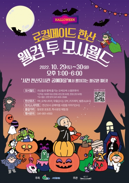 [충청뉴스큐] 서천군이 오는 29일부터 이틀간 오후 1시부터 오후 6시까지 핼러윈데이를 맞아 한산면 한산모시 공예마을 일원에서 ‘로컬메이드 한산, 웰컴 투 모시월드’를 운영한다고 24일 밝혔다.