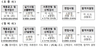 소방항공 전문인력 채용 응시자는 2월 18일부터 2월 20일까지 3일간 중앙소방학교 사이트()에 응시원서를 접수해야 한다. 조종사는 시뮬레이터에 의한 실기평가, 정비사는 평가위원 구술 평가와 서류전형을 거쳐 5월 17일 오후 2시에 최종 합격자가 발표될 예정이다.