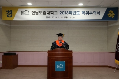 [충청뉴스큐] 전남도립대학교는 12일 강당에서 지난 2018학년도 학위수여식을 열어 전체 수석인 신재생에너지전기과 김동현 씨 등 547명에게 전문학사 학위를 수여했다.