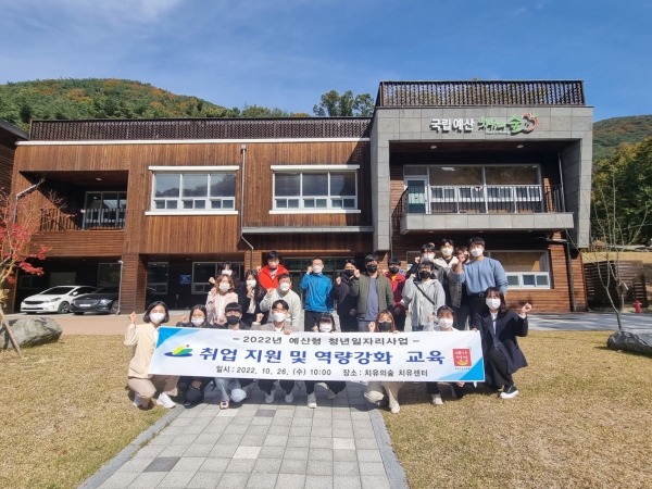 [충청뉴스큐] 예산군은 이달 26일 예산읍 소재 치유의 숲 치유센터에서 예산형 청년일자리사업 취업 지원 및 역량강화 교육을 실시했다.