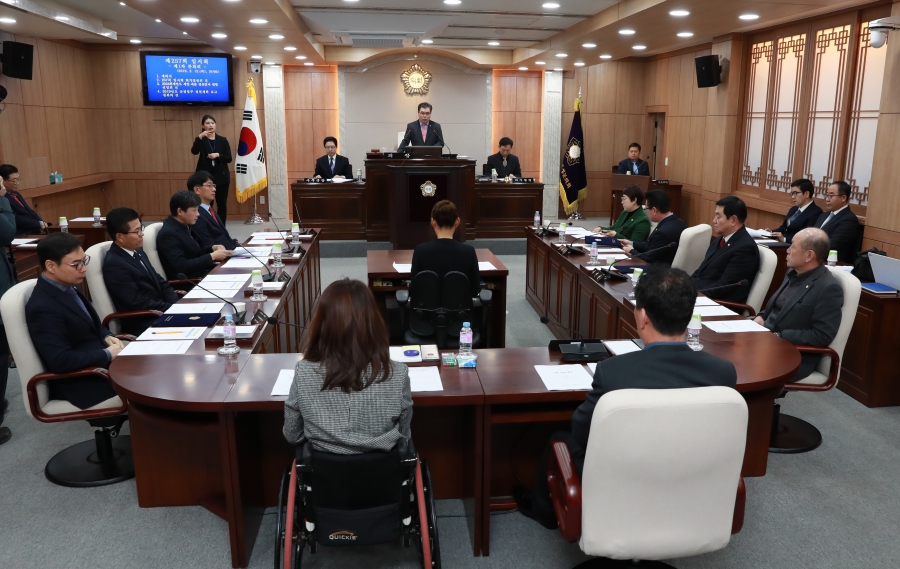홍성군의회(의장 김헌수)는 12일 의회 본회의장에서 제257회 임시회를 개회했다. 이번 새해 첫 임시회는 오는 2월 12일부터 21일까지 10일간의 일정으로 열리며, 2019년도 군정업무 실천계획 보고 청취와 18건의 조례안 등 일반안건을 처리한다. 회기 첫날인 12일에는 제1차 본회의에서 제257회 임시회 회기결정의 건 의결을 시작으로 위원회별로 이병국 부의장이 발의한 홍성군 문화시설 등 셔틀버스 운영 조례안과 이병희 의원이 발의한 홍성군립 국악관현악단 설치 및 운영 조례안 등 18건을 심의·의결했다. 특히, 개회식에서 장재석, 이선균, 문병오 의원이 각각 5분 자유발언을 통해 지역현안에 대한 문제점 지적과 대안을 제시하여 주목을 받았다. 오는13일부터 20일까지는 기획감사담당관을 시작으로 각 부서별 2019년도 군정업무 실천계획 보고를 청취하고 회기 마지막 날인 21일에는 8차 본회의를 열어 조례안 등 일반안건을 최종 의결하고 임시회를 폐회한다. 한편, 군 의회는 이번 임시회부터 청각장애인을 위한 수화통역 서비스를 시작하여 큰 호응을 얻고 있다.