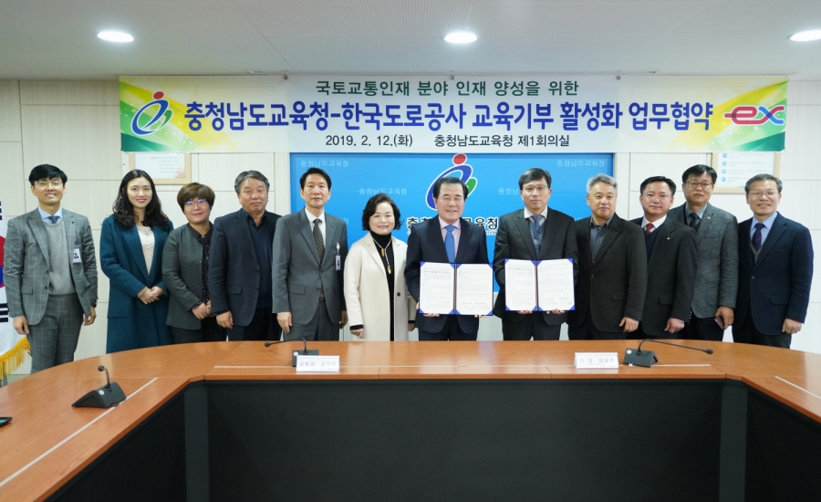 충남도교육청(교육감 김지철)은 12일 도교육청 회의실에서 국토교통분야 기술·기능인재 양성을 위해 한국도로공사 아산천안건설사업단(단장 임철훈)과 업무협약을 체결했다. 이번 협약을 통해 학생들에게 기술지식 습득을 위한 이론과 실습, 진로탐색을 위한 현장체험, 학생과 교사 대상 프로그램 개발 운영 등 토목전공 특성화고 학생들의 직무능력 향상을 지원한다. 또한 국토교통분야 기술·기능 인재의 현장업무능력을 높이고 일자리 창출을 위해 양 기관이 협력하기로 하고 특성화고 학생들의 직업역량강화를 위해 인적·물적 자원을 지원하기로 했다. 특히 한국도로공사 협력 건설기업이 참여하여 학생들의 현장실무교육을 지원하고 채용까지 연계할 계획이다. 김지철 교육감은“특성화고 학생들의 꿈을 지원하기로 약속해준 한국도로공사와 대우건설, 롯데건설, 현대산업개발 관계자분들께 감사드리며, 우리 학생들은 4차 산업시대에 대한민국을 이끌어 나아갈 뛰어난 기술·기능인들로 성장해 나아가도록 우리 사회가 최선을 다해야 한다.”라고 했다. 임철훈 단장은 “우리나라 기술·기능인재 양성에 도움이 되어 기쁘게 생각하며 앞으로도 국토교통분야 전문기술·기능인재 양성을 위해 적극적으로 지원하겠다.”고 했다. 충남도교육청은 특성화고 학생들이 꿈을 이룰 수 있도록 전문기술·기능 인재로서 능력을 높이기 위해 취업역량강화사업을 지원하고, 세계 기술인재로 발돋움할 수 있도록 글로벌 현장학습 등 다양한 지원책을 마련하여 시행하고 있다.