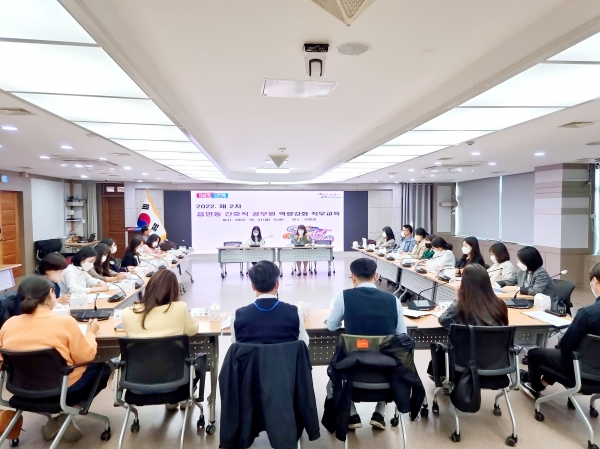 이날 교육은 읍면동 행정복지센터에 근무중인 간호직 공무원과 찾아가는 보건복지팀장을 대상으로 실시됐으며 복지와 간호, 주민을 위한 건강복지 실무 추진 방향에 대해 함께 교육하고 논의하는 자리를 마련한 것이다.