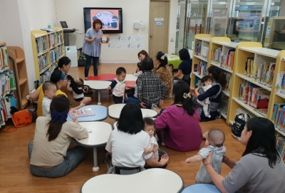유아프로그램으로 진행되는 북스타트 ‘아가랑 부모랑 책놀이‘는 3개월부터 18개월, 19개월부터 35개월 유아와 동반가족 각 15개팀을 대상으로 그림책을 읽은 후 다양한 책놀이 활동을 연계해 아이의 창의력, 상상력 발달은 물론 아이와 부모 간 애착형성을 유도한다.