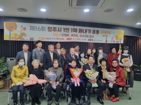 [충청뉴스큐] 청주시는 세계직지문화협회와 함께 추진하는 ‘제16회 청주시 1인 1책 펴내기 운동’ 시상식을 3일 청주첨단문화산업단지 청년꿈제작소 다목적홀에서 개최했다고 밝혔다.