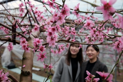 보통 노지의 복숭아꽃은 4월부터 5월에 피지만 이 곳의 시간은 2개월여가 빨리 가며, 수확시기도 덩달아 빠르다.
