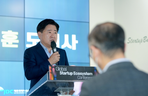 [충청뉴스큐] 국내외 스타트업과 벤처투자기관 등이 모여 스타트업 생태계의 지속 가능한 발전 및 글로벌 진출 등을 유도하는 글로벌 컨퍼런스가 8일 제주에서 열린 가운데, 오영훈 제주특별자치도지사가 민선8기 핵심 전략을 국내외 스타트업에 소개하며 협력을 요청했다.