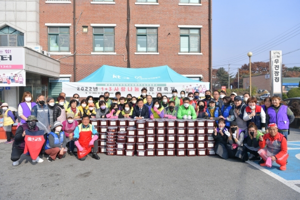 [충청뉴스큐] 예산군자원봉사센터는 자원봉사센터 주차장에서 관내 취약계층의 겨울나기를 응원하는 ‘2022년 1+3 사랑나눔 김장대축제’를 진행했다고 11일 밝혔다.