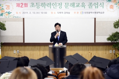 [충청뉴스큐] 인천평생학습관은 13일 도성훈 교육감을 비롯해 학력인정 문해교육 졸업생과 가족, 학습교사, 재학생 등 80여명이 참석한 가운데 제2회 초등학력인정 문해교육 졸업식을 실시했다.