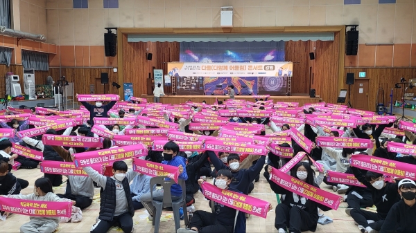 공연이 끝난 후 학생 및 참석자 모두가 “모두의 울타리, 다함께 어울림 강원 파이팅”, “학교폭력 없는 강원” 등의 구호 외치기 활동을 통해 학교폭력 근절에 대한 다짐의 시간을 갖는다.