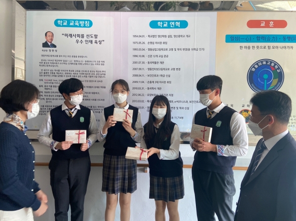 대신 영동군청소년상담복지센터는 2023학년도 대학수학능력시험과 애플데이를 맞이해 지역 수험생과 취업준비생 305명에게 ‘밝은 미래를 응원한다’ 라는 문구와 함께 응원의 메시지를 담은 수능응원떡을 전달했다.
