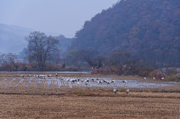 [충청뉴스큐] 러시아와 중국 등지에서 거주하던 천연기념물 야생 황새 50여마리가 황새의 고장인 예산군을 찾아 화제가 되고 있다.