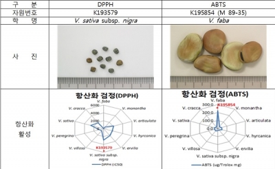 이번 연구에 사용된 자원은 농촌진흥청이 미국 농업연구청에서 들여온 Vicia속 10종 27자원이며, 플라보노이드와 총 폴리페놀 함량, 항산화 활성 등을 조사했다.
