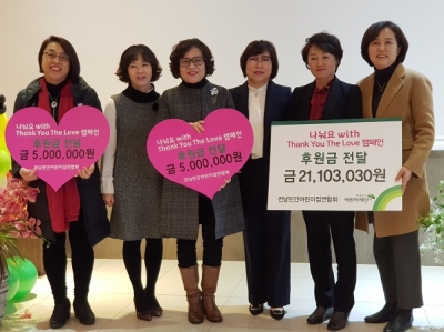 ‘나눠요 WITH’는 올해 두 번째 행사로, 연합회에서는 국내외 아동복지사업을 하는 초록우산어린이재단에 2천만 원, 가정폭력 피해자 보호시설에 500만 원, 성매매피해자자활시설에 500만 원을 후원했다.