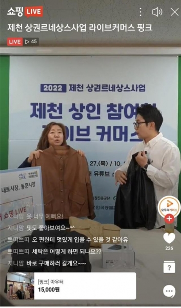 오는 12월 15일까지 매주 화, 수, 목요일 전통시장 내에서 판매하는 의류, 침구류, 먹거리, 생활용품 등 다양한 상품을 라이브로 방송해 실시간 전국 고객들에게 제천 전통시장을 널리 알릴 계획으로 일정, 품목 등 자세한 사항은 사업단 인스타그램, 블로그 등을 확인하며 시청은 네이버쇼핑라이브에서 ‘제천전통시장’을 검색하면 된다.