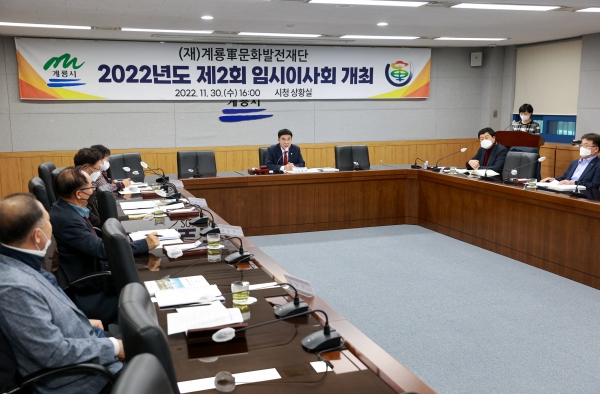 [충청뉴스큐] 계룡軍문화발전재단은 지난 30일 시청 상황실에서 2022년도 제2회 임시이사회를 개최했다고 밝혔다.