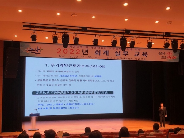 [충청뉴스큐] 논산시가 지난 11월 30일 논산아트센터에 대공연장에서 부서별 회계 업무 및 사업 담당자를 대상으로 직무교육을 실시했다.