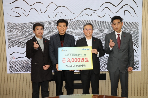 [충청뉴스큐] 귀뚜라미그룹은 지난 5일 금산군청을 방문해 금산군 지역인재 육성을 위한 장학금 3000만원을 기탁했다.
