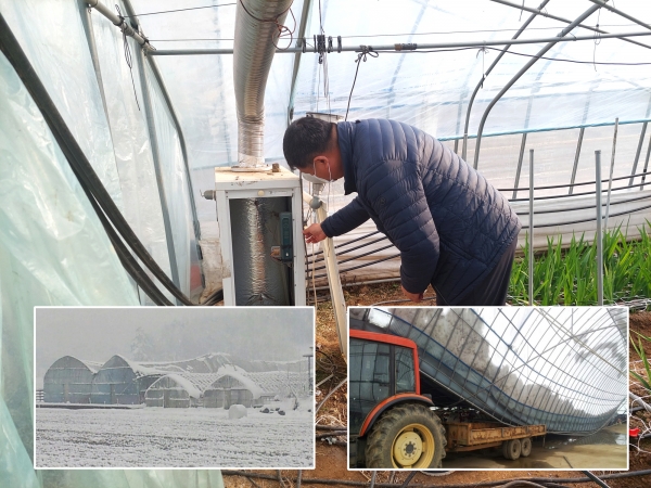 또한, 폭설이 예상될 때 눈의 무게를 견딜 수 있도록 보강시설을 설치하고 차광망, 부직포 등 외부 피복물은 신속히 걷어내며 눈이 계속 쌓여 붕괴 우려가 있는 하우스는 수시로 눈 쓸어내리기 실시해 피해를 최소화해야 한다고 당부했다.