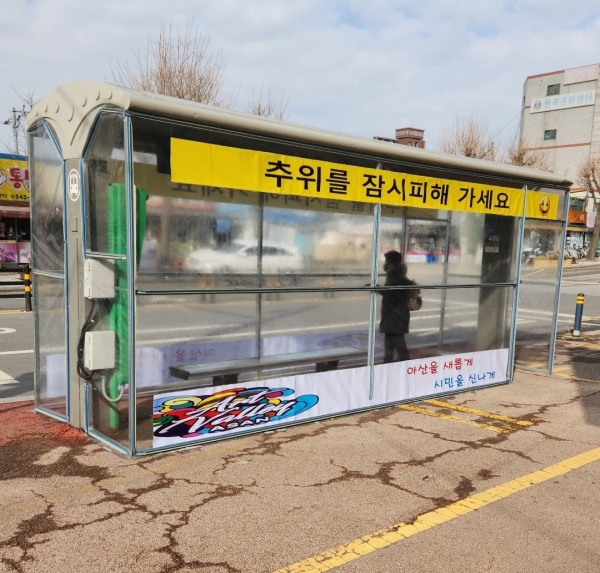 [충청뉴스큐] 아산시가 아트밸리 디자인이 적용된 추위 대피시설 4개소 추가설치를 완료했다고 9일 밝혔다.
