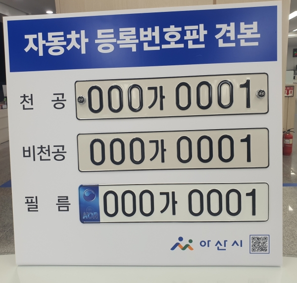 견본은 실제 자동차등록번호판 종류와 같이 천공, 비천공, 필름 3종으로 제작됐으며 차량 관련 홍보물 게시대도 함께 제작해 차량 업무에 대한 정보 접근이 쉽도록 개선했다.