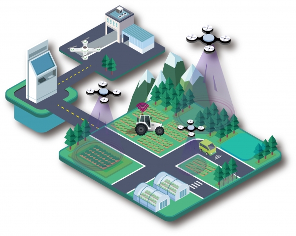 드론이 사람의 조종 없이 작업명령에 따라 배터리부착, 농약 충전 후 자동 이륙해 방제하고 다시 회귀하는 과정과 드론이 취득한 작업지 경계 좌표를 이용해 자율주행 알고리즘에 따라 트랙터가 자율작업하는 기능을 처음으로 선보인다.