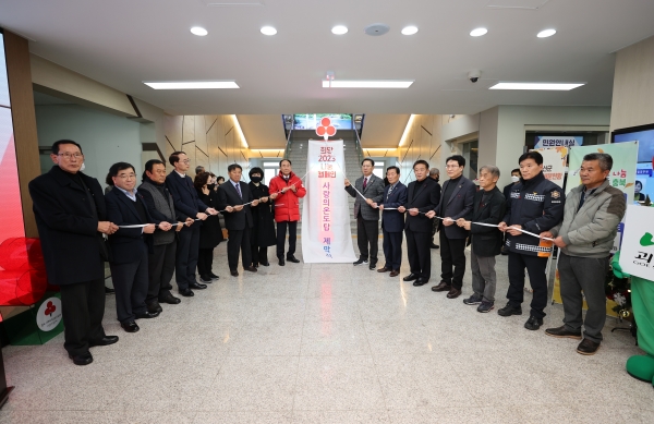 [충청뉴스큐] 충북 괴산군은 충북사회복지공동모금회와 함께 14일 사랑의 온도탑 제막식을 열고 ‘함께하는 나눔 지속 가능한 충북’이라는 슬로건 아래 ‘괴산군 희망2023나눔캠페인’ 행사를 개최했다.