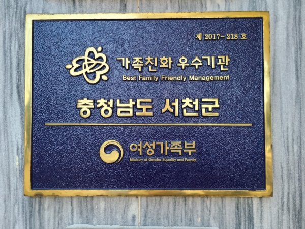 서천군은 임신기와 육아기 근로시간 단축제도와 배우자 출산휴가, 장기재직특별휴가, 유연근무제 시행 등 다양한 가족친화제도 운영으로 높은 평가를 받아 재인증을 받았다.