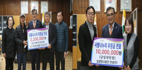 지난 21일에는 농업회사법인 한생㈜가 어려운 이웃을 위해 써달라며 사랑나누리 이웃돕기 후원금 1000만원을 서천군에 기탁했다.