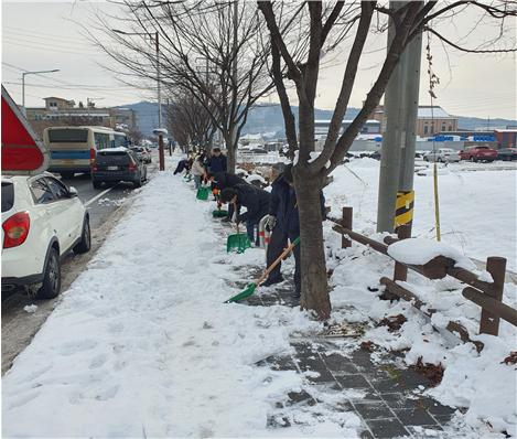 앞서 시가지 내 주요 도로 및 이면도로는 덤프트럭과 백호우 장비를 동원으로 어느 정도 제설작업이 이뤄졌지만, 보도에 쌓인 눈은 장비투입에 한계가 있는 상황이었다.