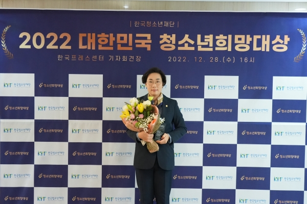 이어 “이번 수상은 청소년이 직접 투표해 선정했다는 점에서 특히 의미가 있고 감사하게 생각한다”며 “우리의 미래를 함께 할 청소년의 능동적이고 희망적인 삶의 환경조성을 위해 앞으로도 더 많은 관심과 정책제안으로 청소년이 희망찬 미래를 만들어 나갈 수 있도록 노력하겠다”고 수상소감을 밝혔다.