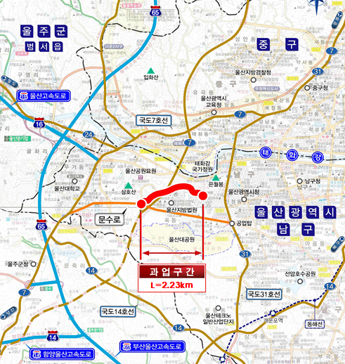 한편 문수로 우회도로 사업은 문수로 주변으로 밀집된 대단위 공동주택과 각종 개발사업 등으로 인한 차량 증가로 상습정체가 발생되고 있 는 문수로의 교통혼잡을 완화하기 위해 추진하는 사업이다.