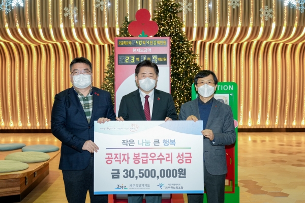 [충청뉴스큐] 제주특별자치도와 제주특별자치도공무원노동조합은 올해로 11년째를 맞는 봉급우수리 모금 지원 사업을 통해 도내 어려운 이웃을 위한 ‘희망 나눔’ 문화를 실천했다.