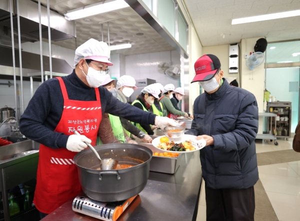 [충청뉴스큐] 송인헌 괴산군수는 3일 2023년 계묘년 새해를 맞아 괴산군노인복지관 1층 나눔터에서 배식봉사에 나섰다.