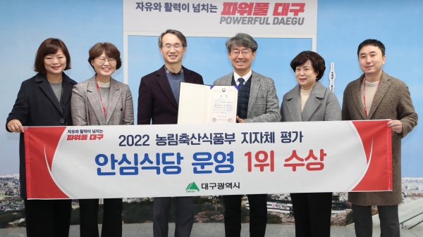 [충청뉴스큐] 대구시는 농림축산식품부가 주관한 ‘2022년 하반기 안심식당 운영 우수 지자체 평가’에서 전국 1위 기관으로 선정돼 장관상을 수상했다.