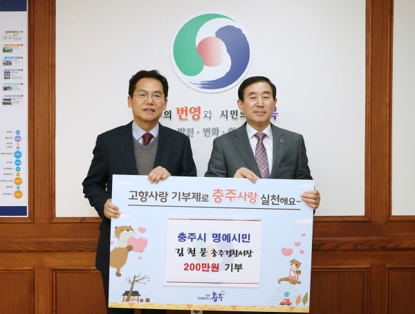 김철문 서장은 이날 명예시민 수여식이 끝난 후 충주시 고향사랑기부제에 200만원을 기부하며 명예시민으로서 충주에 대한 애정을 드러냈다.
