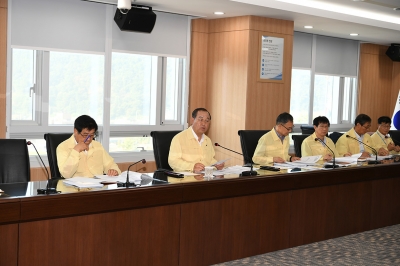 황선봉 군수는 22일 군청 회의실에서 관련 부서장과 각 읍면장과 함께 태풍 대비 상황판단 및 대책회의를 개최, 실무부서별 조치사항 및 단계별 대처계획을 점검했고 재난 대비에 총력을 기울일 것을 당부했다.