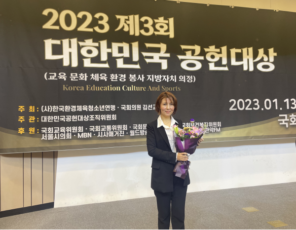 [충청뉴스큐] 서울시특별시의회 아이수루의원이 1월 13일 한국환경체육청소년연맹과 국회의원 김선교 의원실이 공동주최하고 대한민국공헌대상 조직위원회가 주관하는 2023 대한민국공헌대상 시상식에 참석했다.