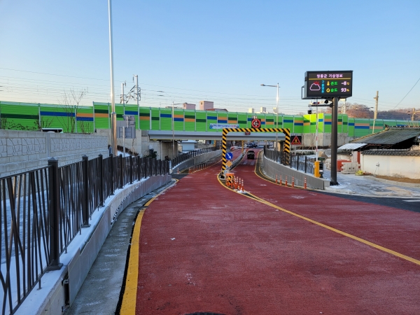 이에 영동군은 국가철도공단과 2019년 12월 위수탁 협약을 체결하고 2022년 12월까지 총사업비 169억원을 투입해 도로확장(310m), 철도교 개량(22.5m), 집수시설 신설(576톤)을 추진했으며 침수예방 재난예·경보시스템도 구축했다.