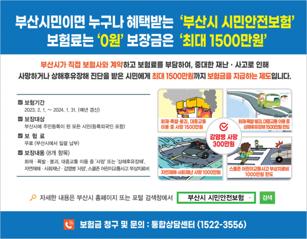 이는 올해 시민안전보험의 시행 2년 차를 맞아, 예기치 못한 재난과 중대사고로부터 부산시민의 생활안정을 더욱 폭넓게 빈틈없이 지원하기 위해서다.